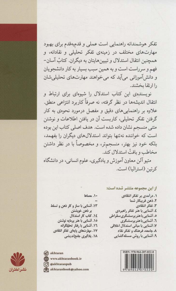 کتاب تفکر هوشمندانه مهارت فهم و نگارش نقادانه نشر اختران