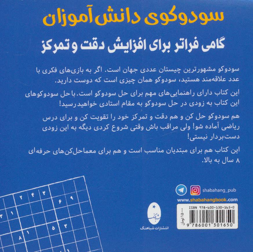 کتاب سودوکوی دانش آموزان نشر شباهنگ
